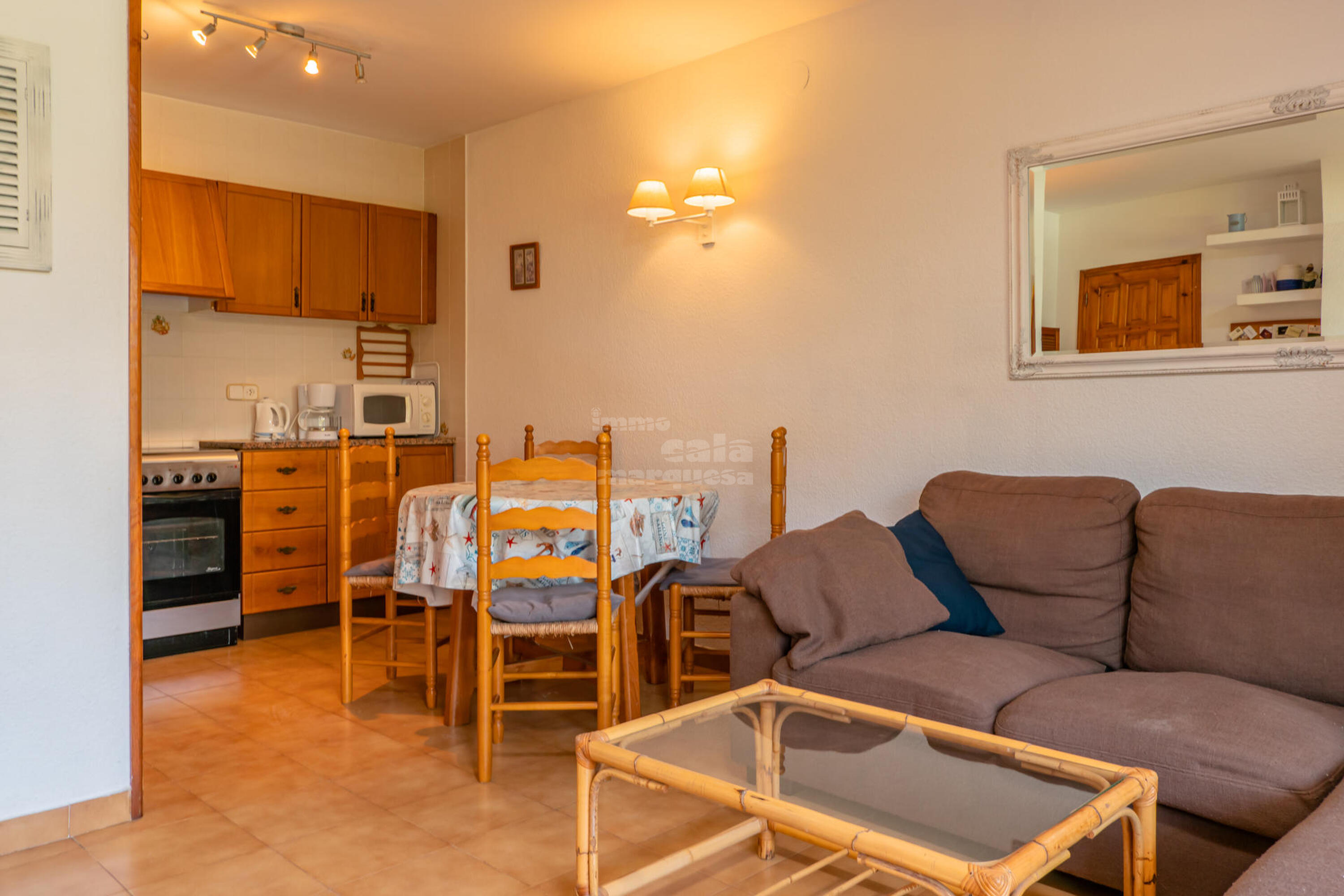 Consta de saló-menjador amb cuina oberta i sortida a una àmplia terrassa, 2 dormitoris dobles i un bany complet.