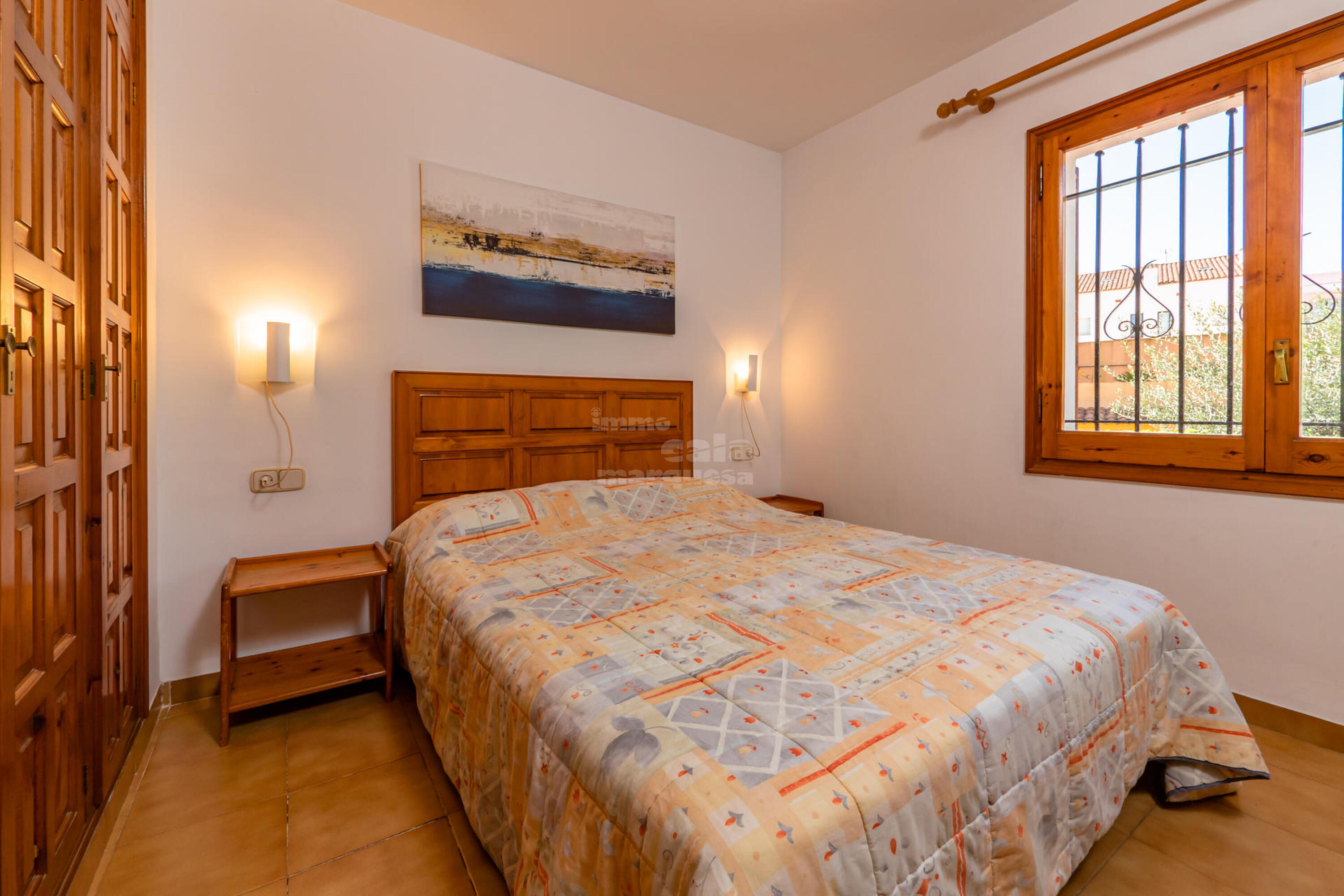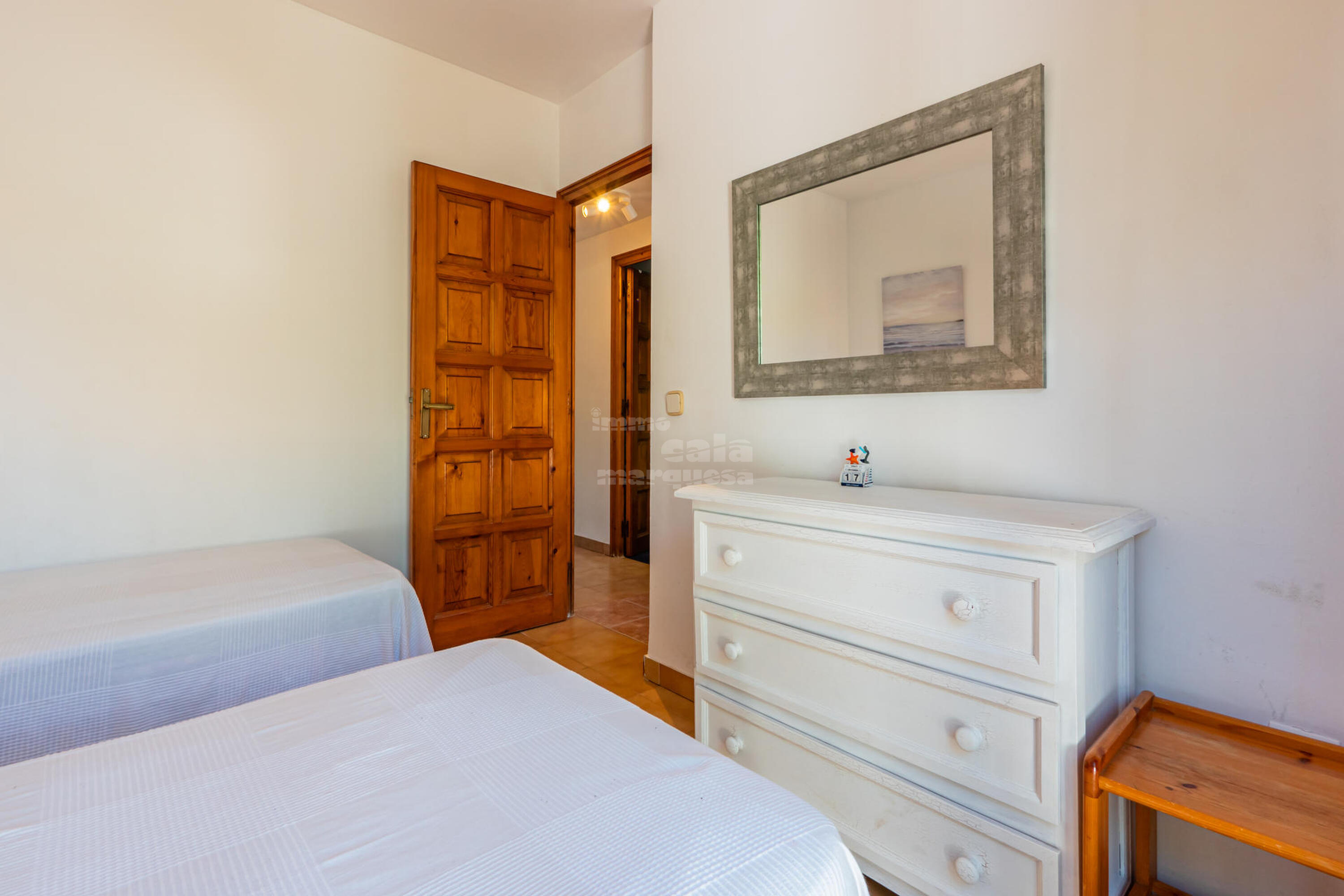 L'habitació amb dos llits té sortida a una terrassa posterior.