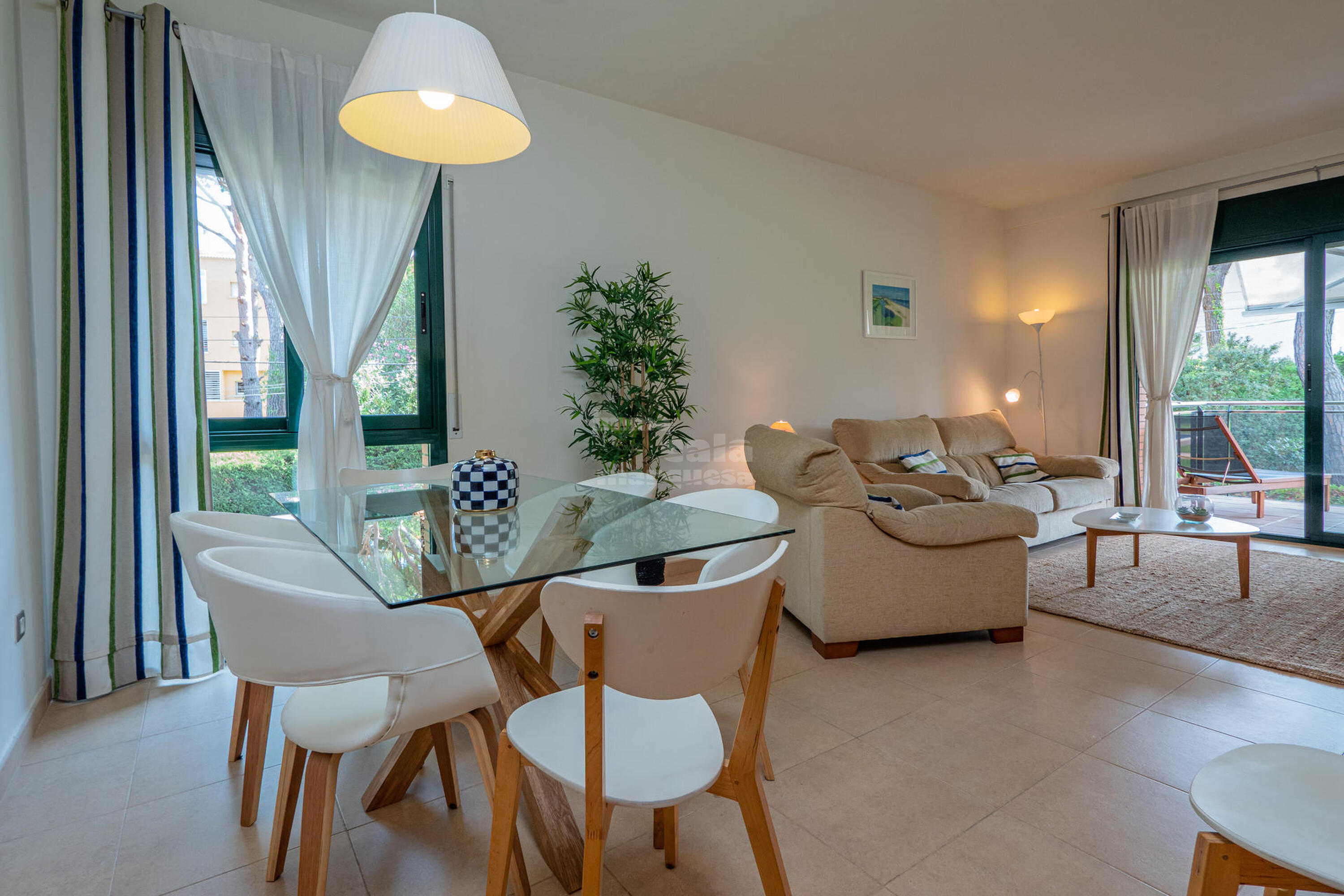 Ubicat davant del golf de Pals, consta de 3 habitacions, una tipus suite amb llit doble i bany amb dutxa, una habitació doble amb llit doble i una tercera habitació amb un llit niu, totes dues comparteixen un bany amb dutxa.Saló menjador amb sortida a una àmplia terrassa amb vistes a la piscina, cuina totalment equipada també amb sortida a la terrassa.