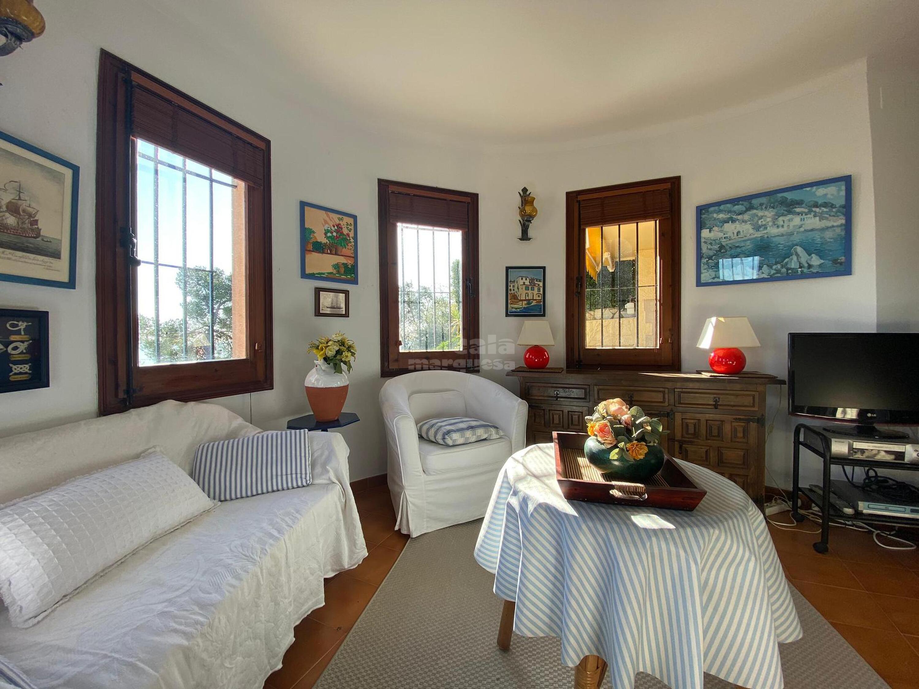 Disposa d'un original saló en forma de torrassa, menjador amb sortida a una gran terrassa de pedra natural, amb barbacoa, meravelloses vistes al mar i petit jardí privat, cuina equipada, 1 suite, 1 habitació doble i un lavabo amb dutxa.