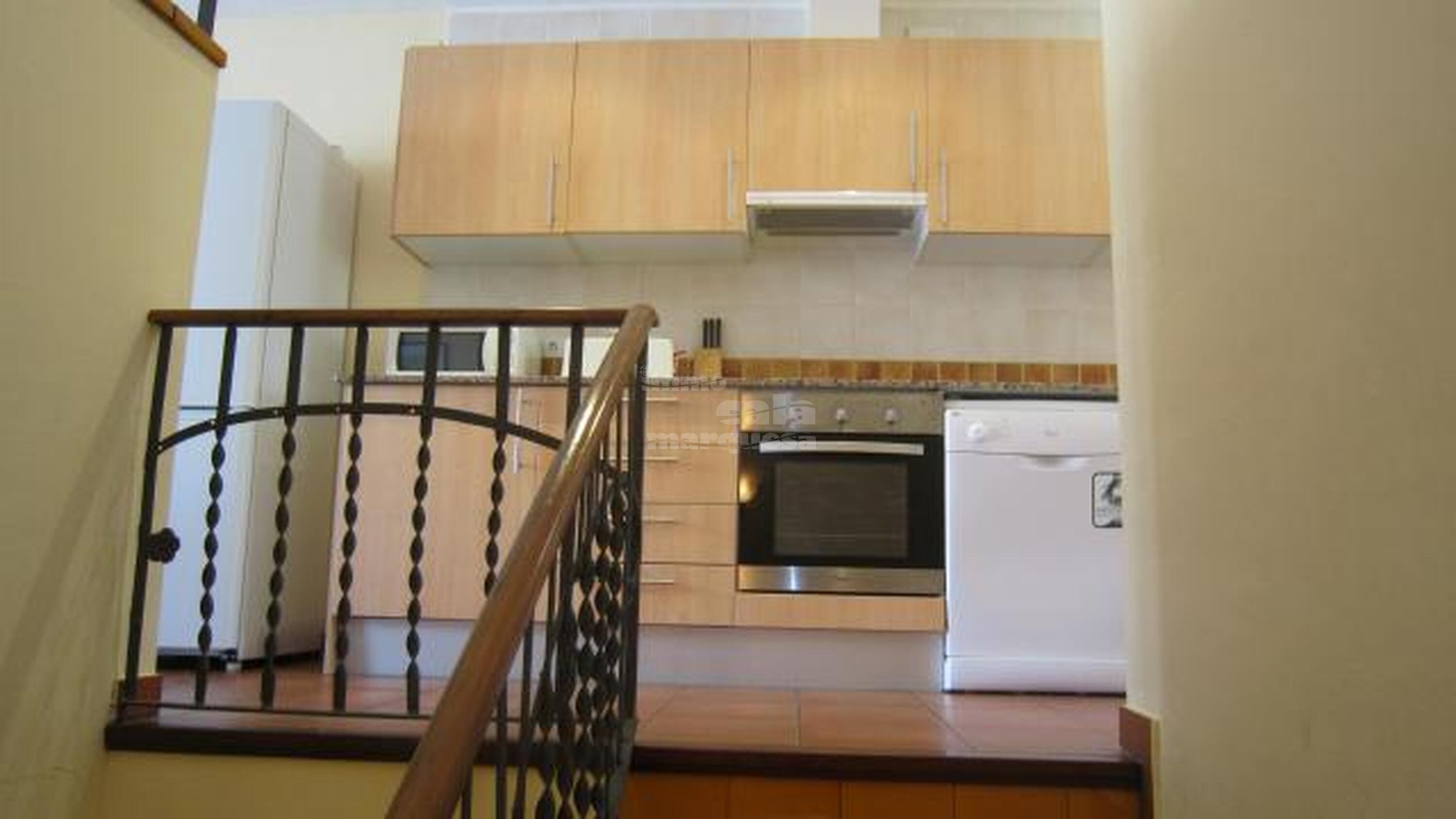 En entrar a aquest apartament de dues plantes trobem unes escales que ens porten cap a la