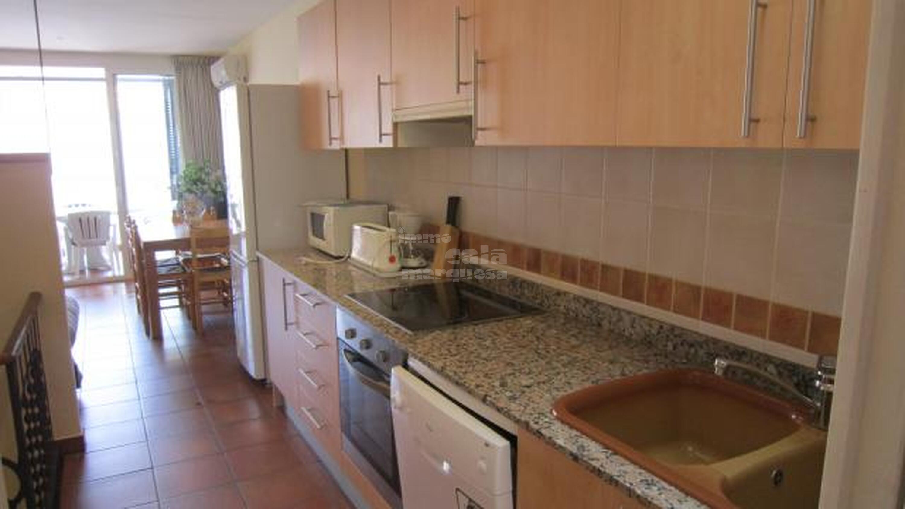 de Calella, la cuina, completament equipada, 1 habitació doble i 1 bany complet.