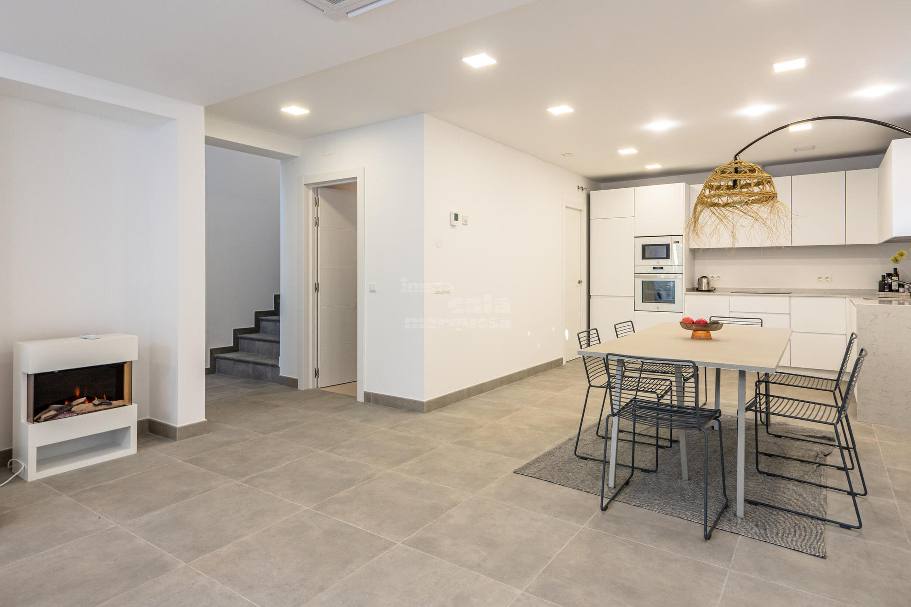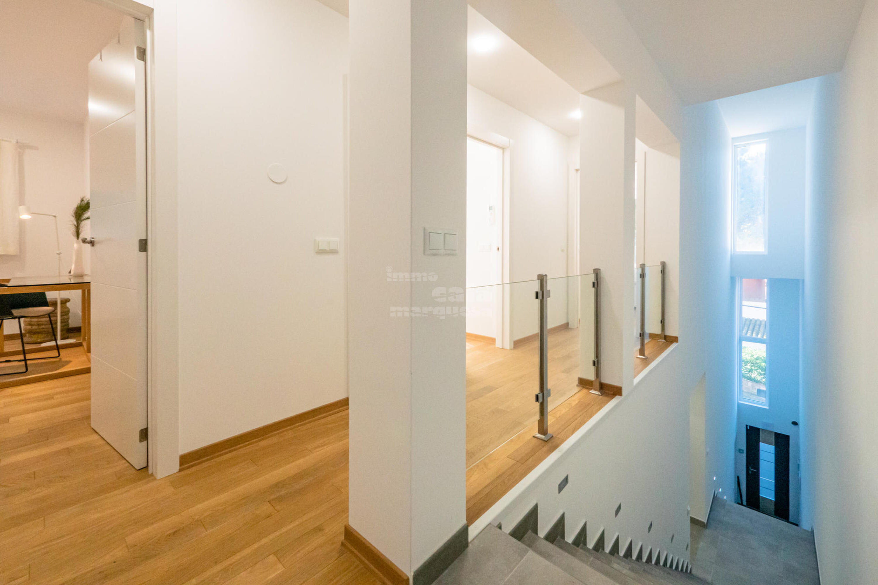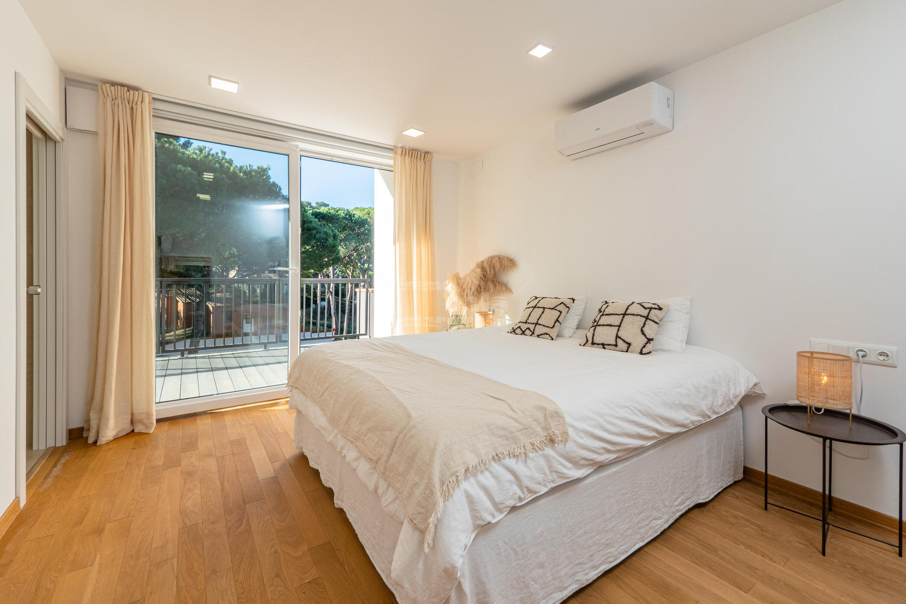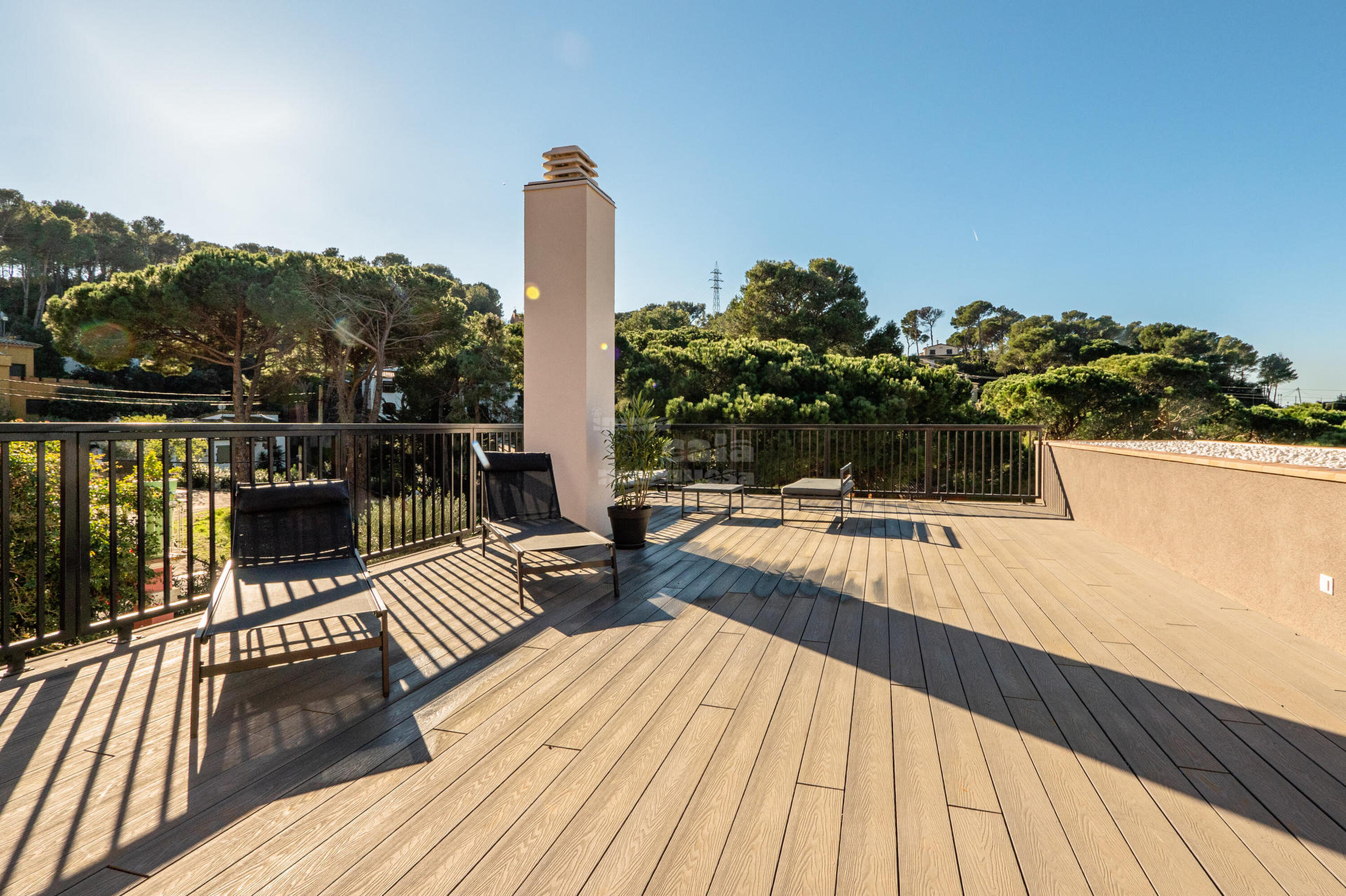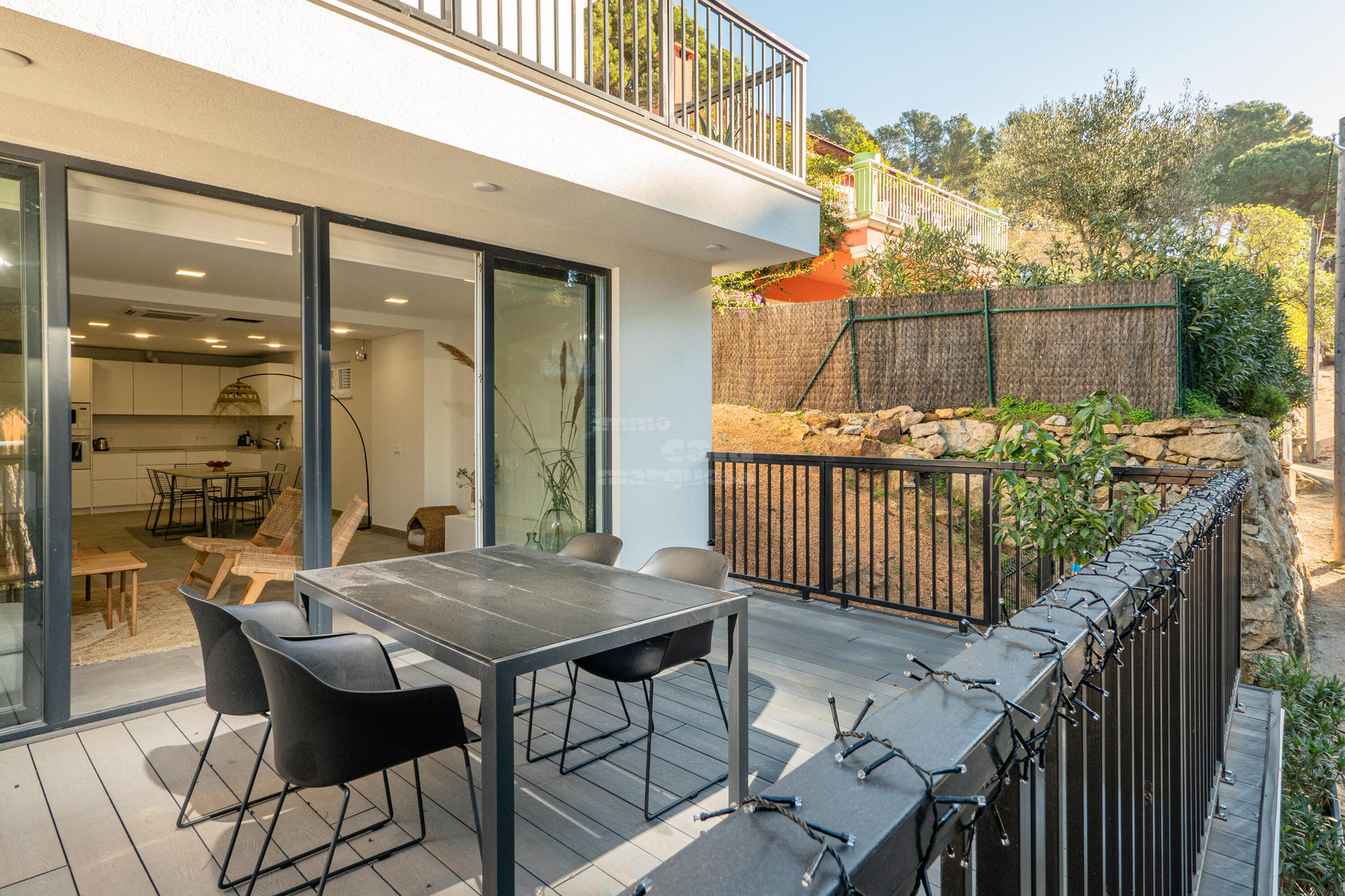 Casa de 3 plantes. A la planta principal trobem la cuina, totalment equipada, oberta al saló menjador i amb sortida a una àmplia terrassa, ideal per menjars familiars i des d'on es pot contemplar el capvespre. A la segona planta hi ha les tres habitacions, una tipus suite amb llit doble de 1,80x2, bany amb dutxa i una terrassa, una altra habitació doble amb dos llits de 90x2 i la tercera habitació amb llit doble de 1,80x2, aquestes dues habitacions comparteixen un bany amb banyera. A la tercera planta es troba, a la dreta una terrassa tipus chill out, a l'esquerra la piscina, al centre hi ha distribuïdor amb un lavabo.