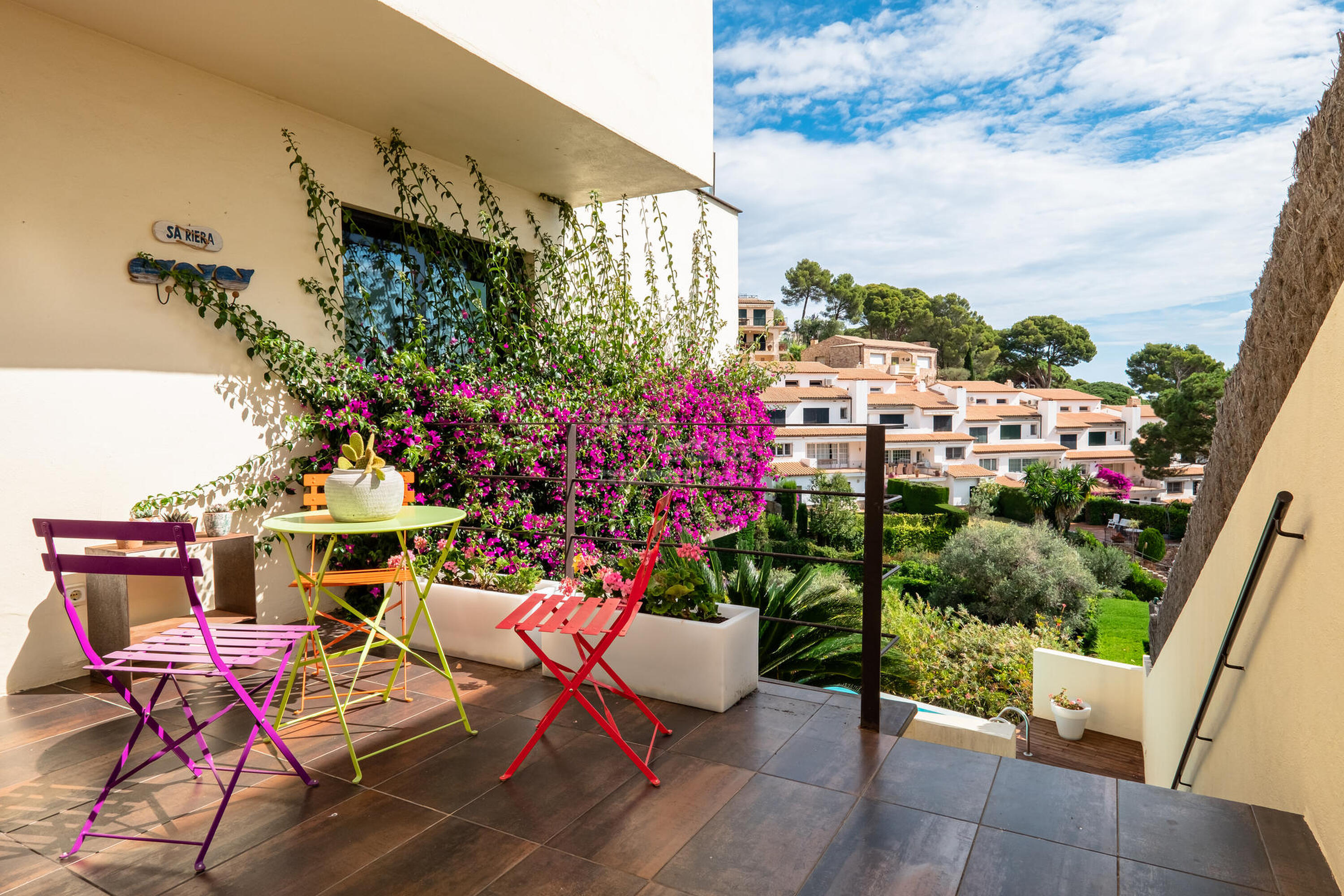 La platja de Sa Riera es troba a 500 m de la casa, s'hi pot accedir directament caminant, a través d'un camí veïnal al final del jardí, accés privat.