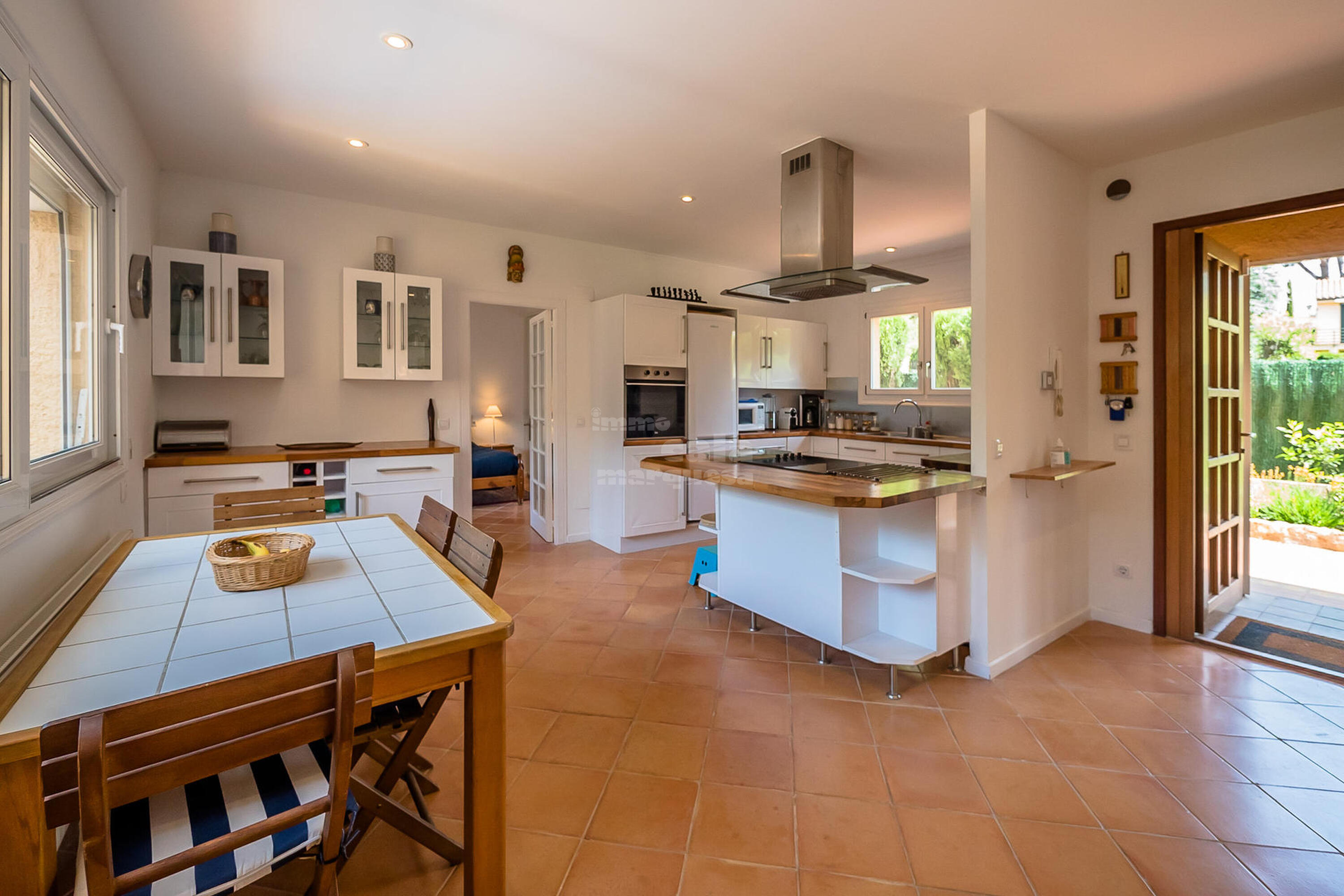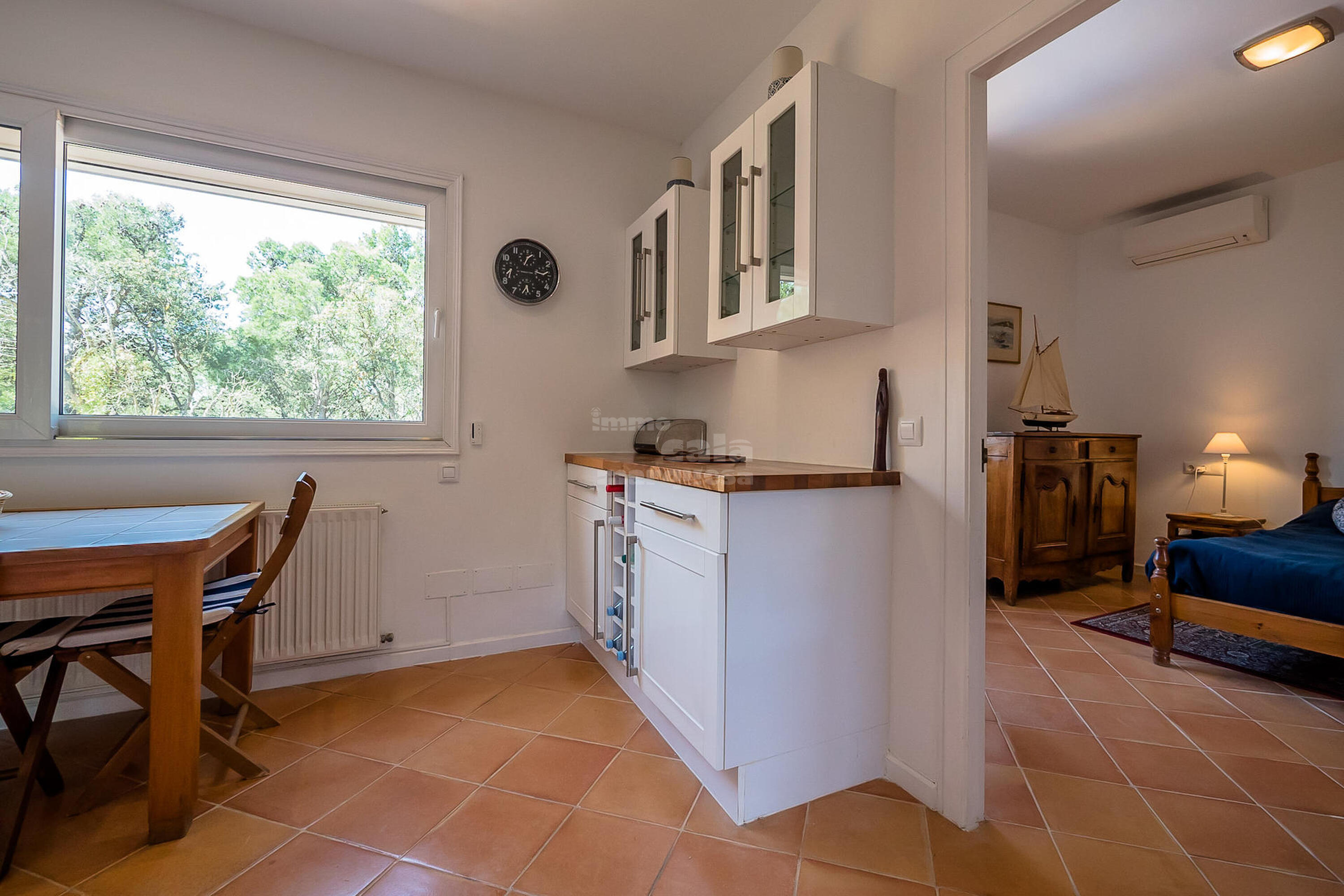 Aquesta distribuït en dues plantes. A la planta principal, per on s'accedeix a la casa, trobem una àmplia cuina reformada amb molt de gust i totalment equipada. Un saló menjador amb sortida a una terrassa ideal per gaudir de dinars i sopars a l'aire lliure i una suite amb llit doble i bany amb dutxa.