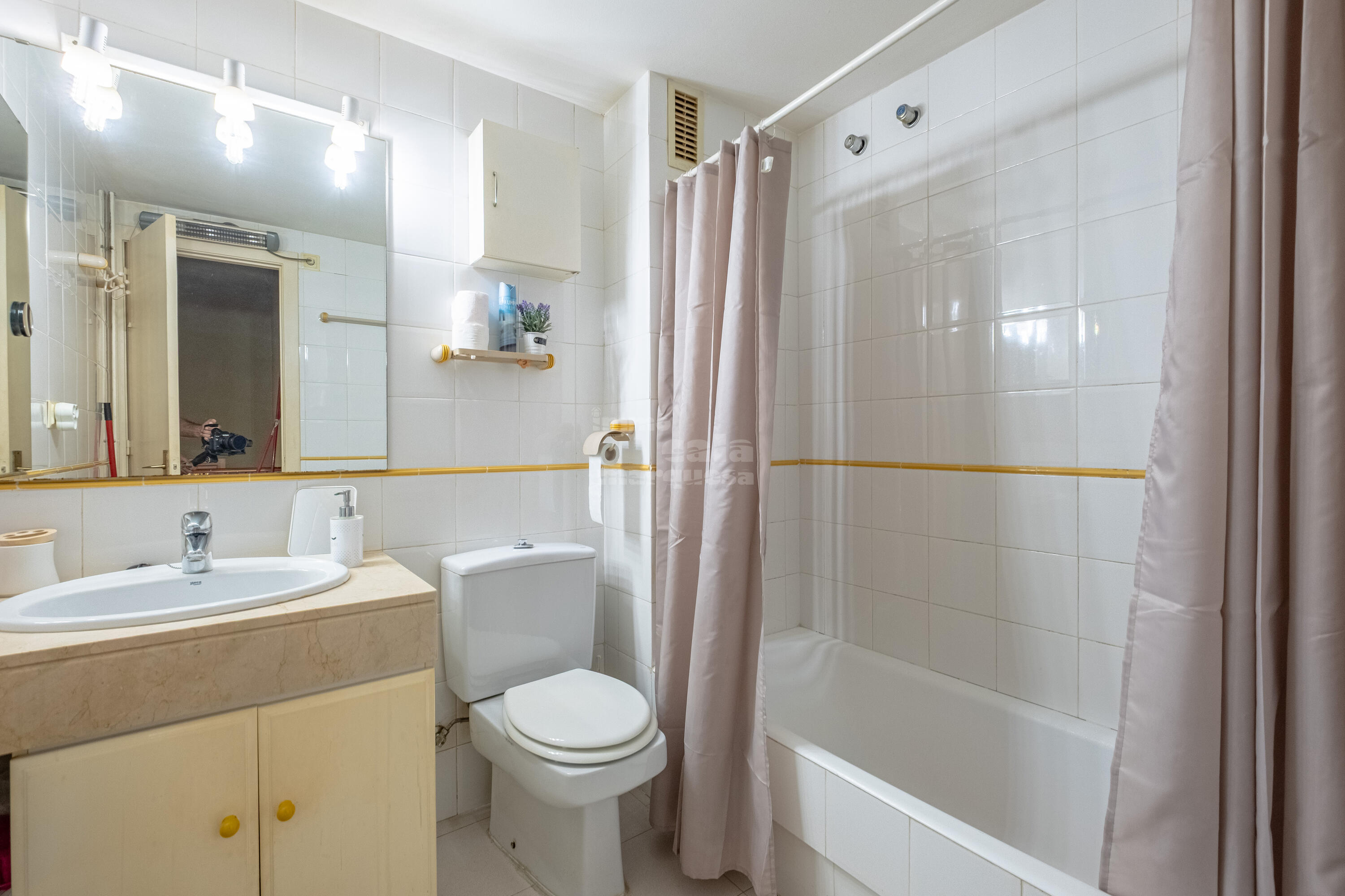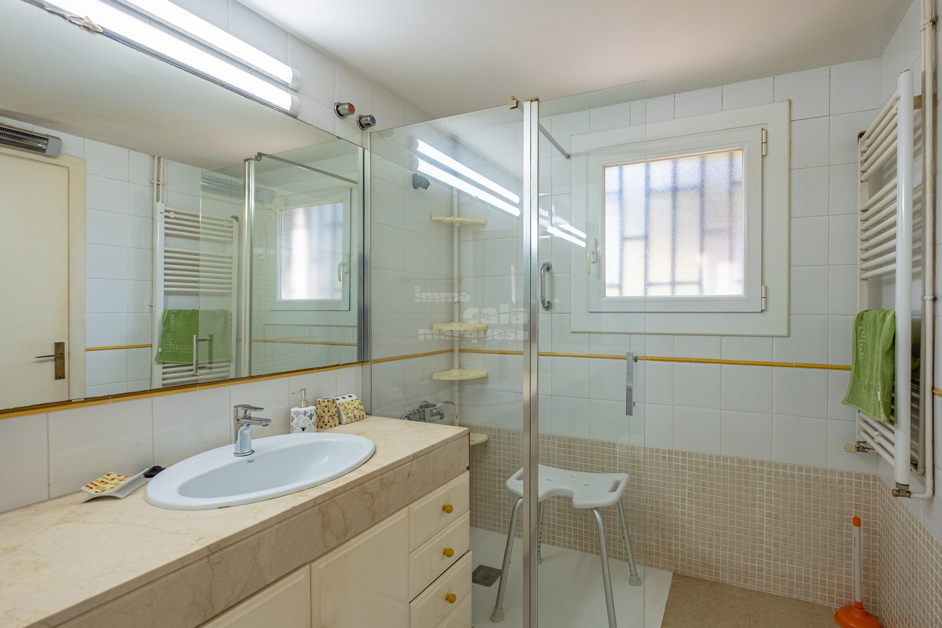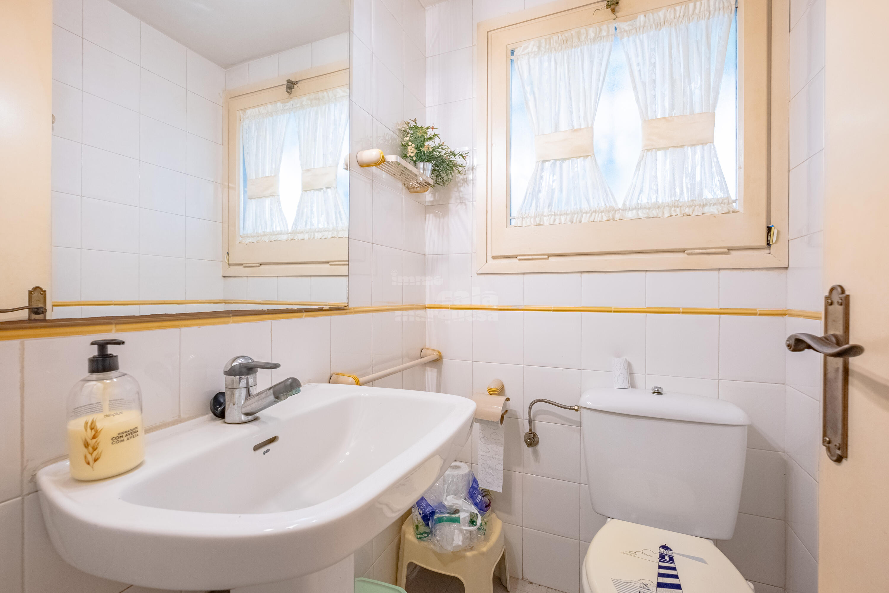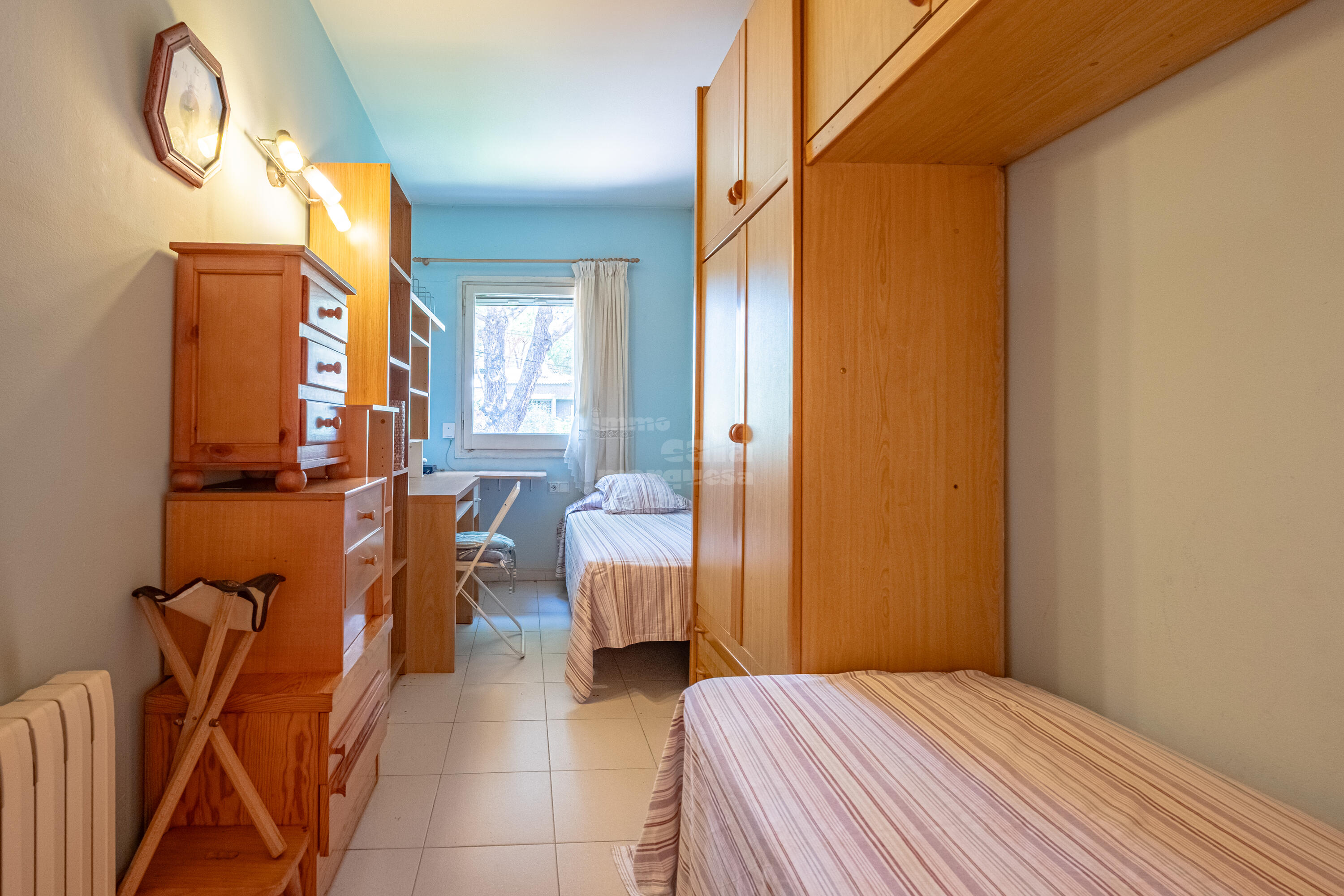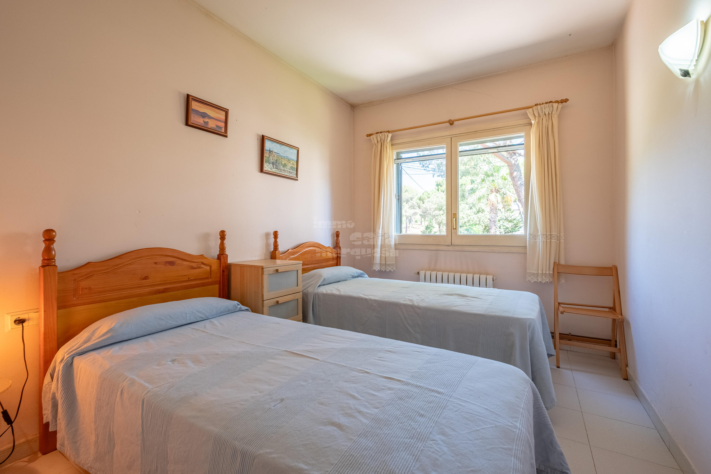 A la primera planta, hi ha dos banys complets, un en suite, i tres habitacions dobles, dues de les quals amb dos llits individuals.