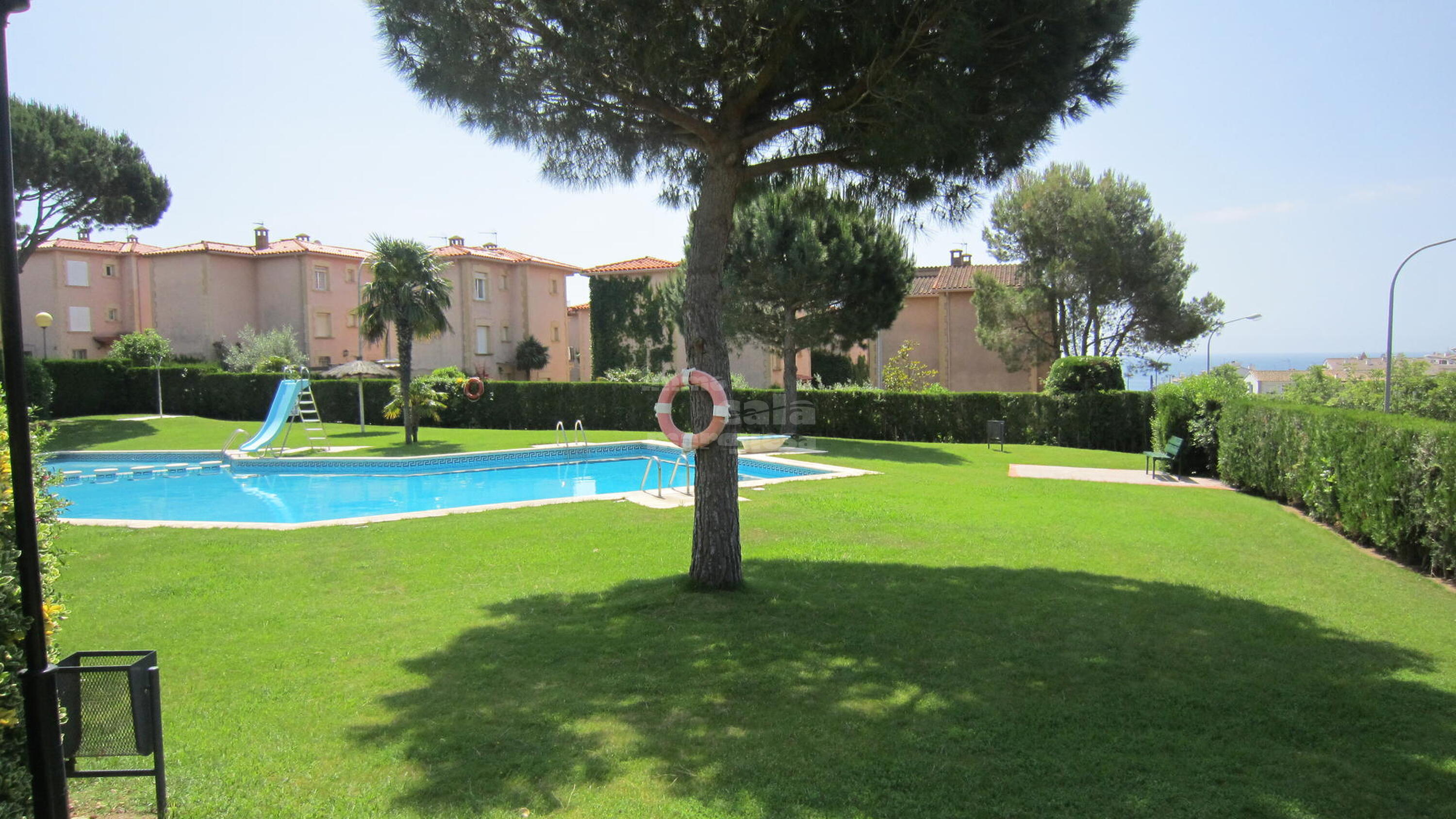 Gemeinschaft mit Garten und Pool (dazu muss mann eine kleine Verkerlose Strasse kreuzen).