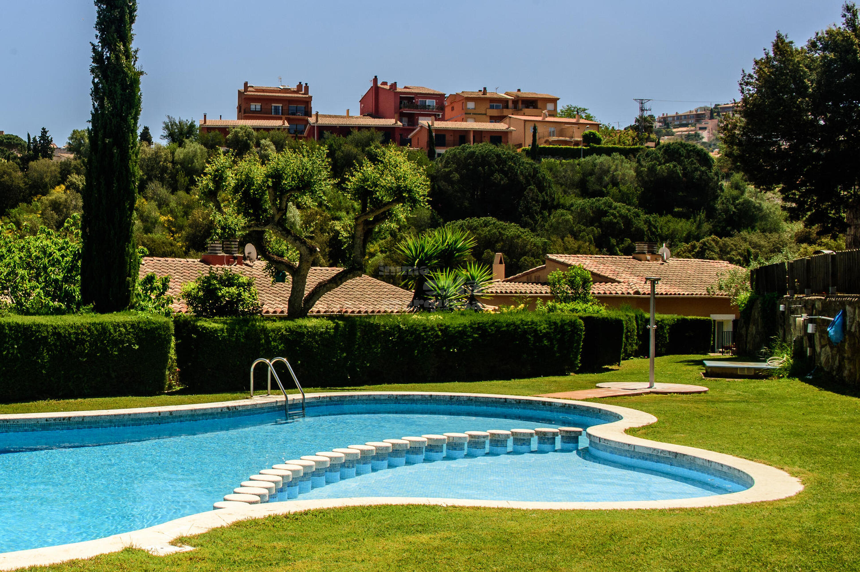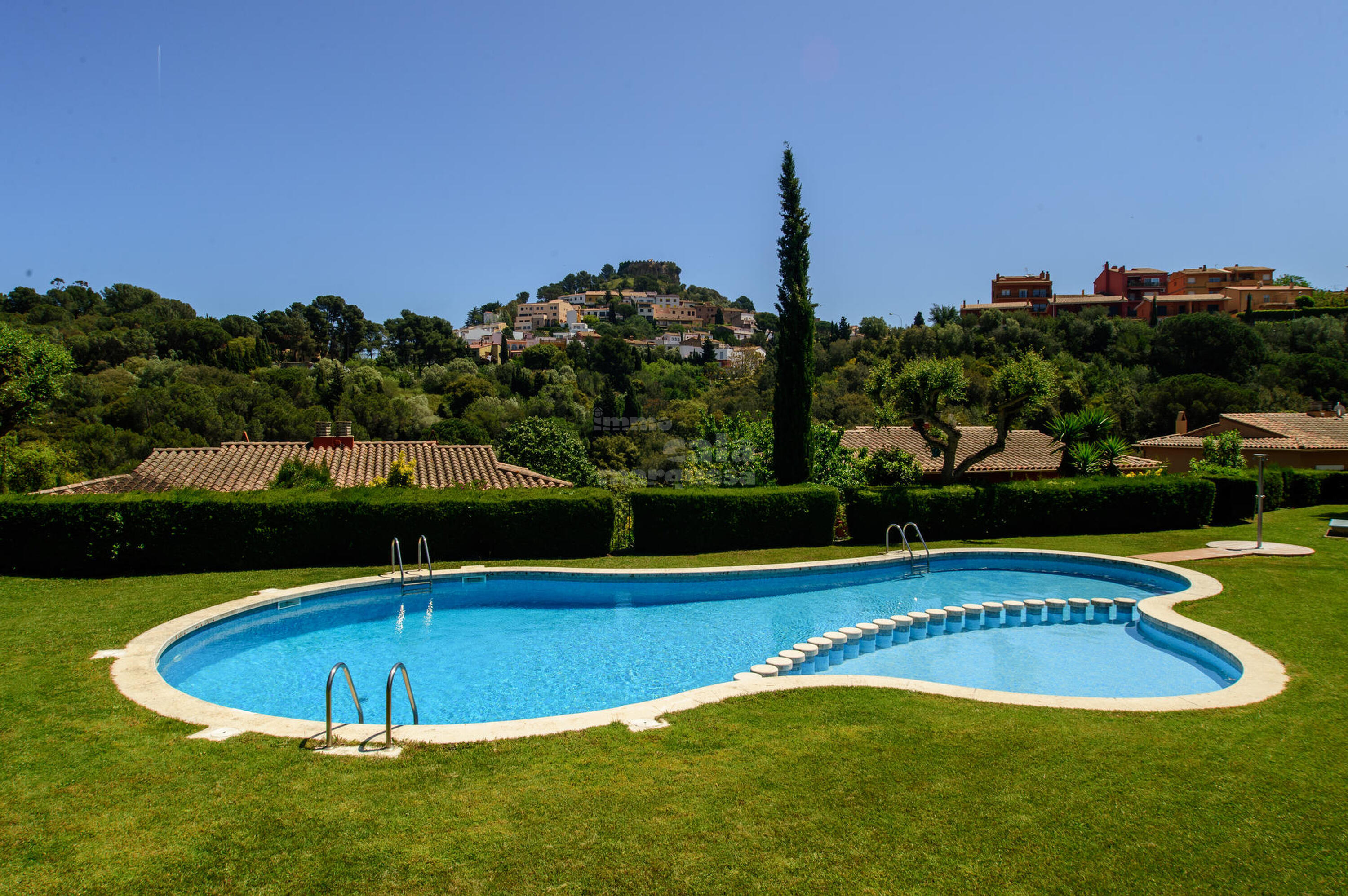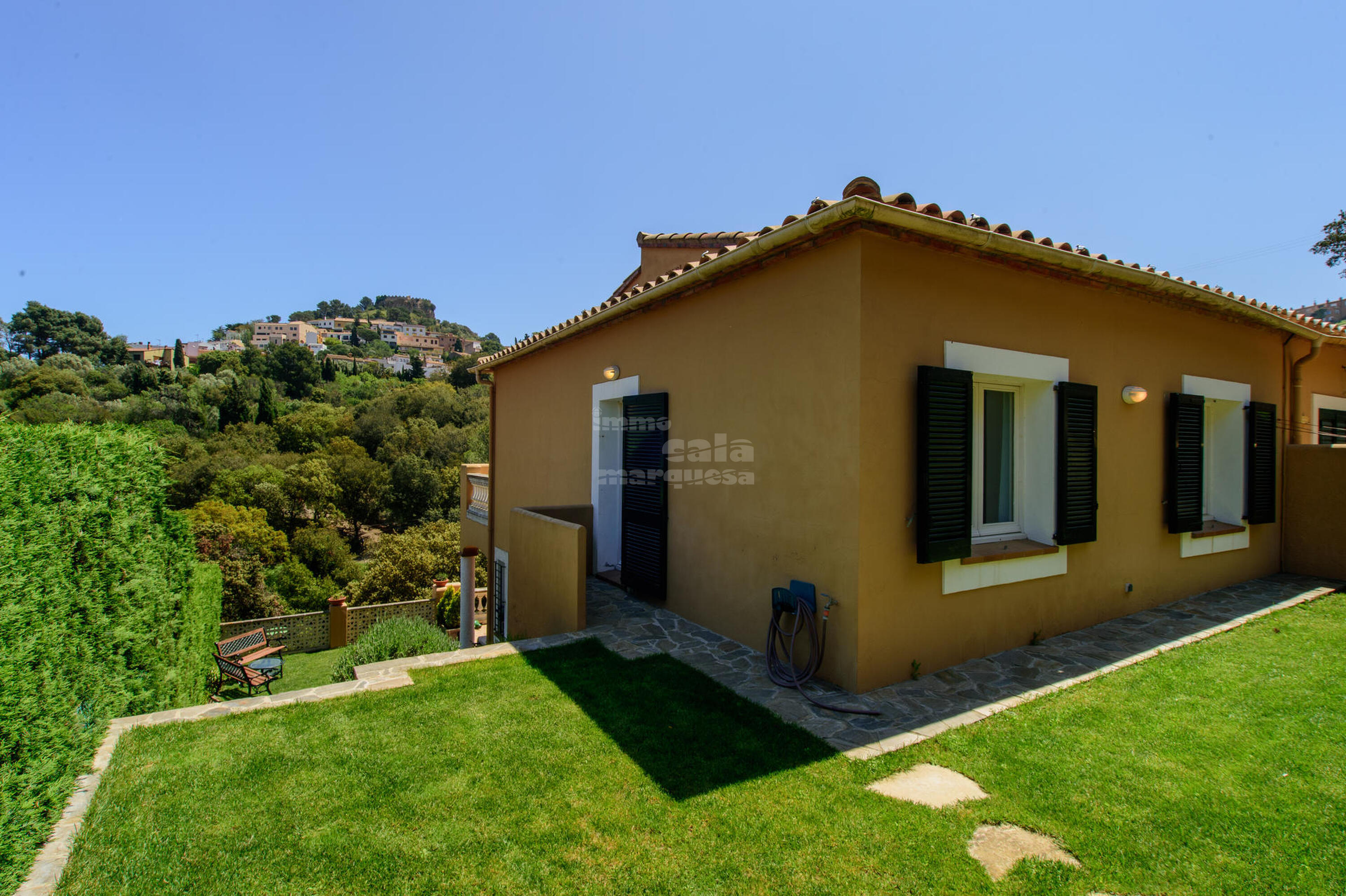 Casa esquinera, con piscina y jardín comunitario en el pueblo de Begur, Costa Brava.